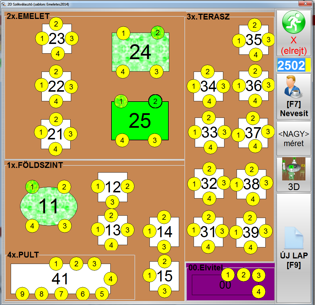 - Egy kattintással összevonhatunk minden széket egy asztalnál (ha egyben-fizetnek).